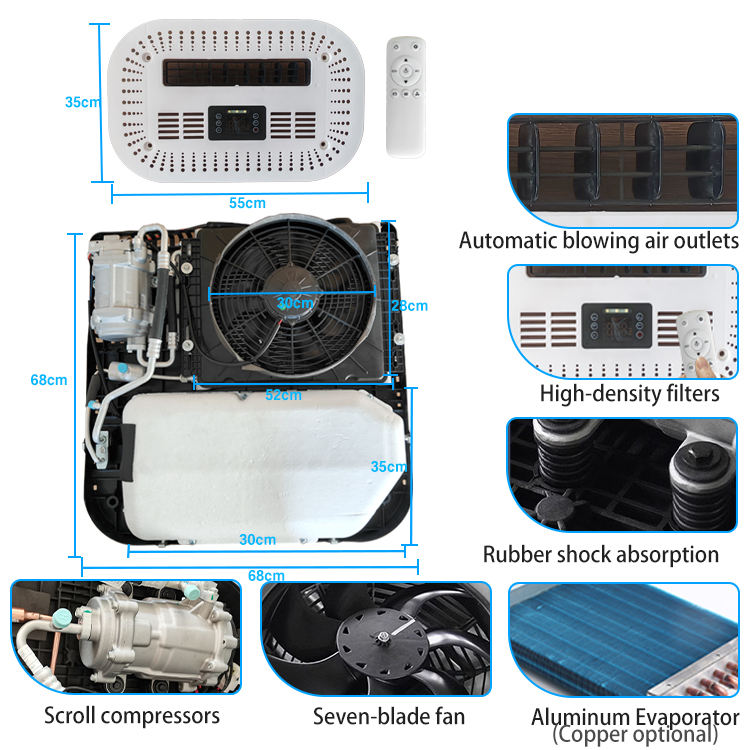 I'm looking to purchase a low profile van rooftop air conditioner. It should be efficient, lightweight, and designed for various weather conditions. I need something that can provide reliable cooling while not adding too much height to the vehicle.