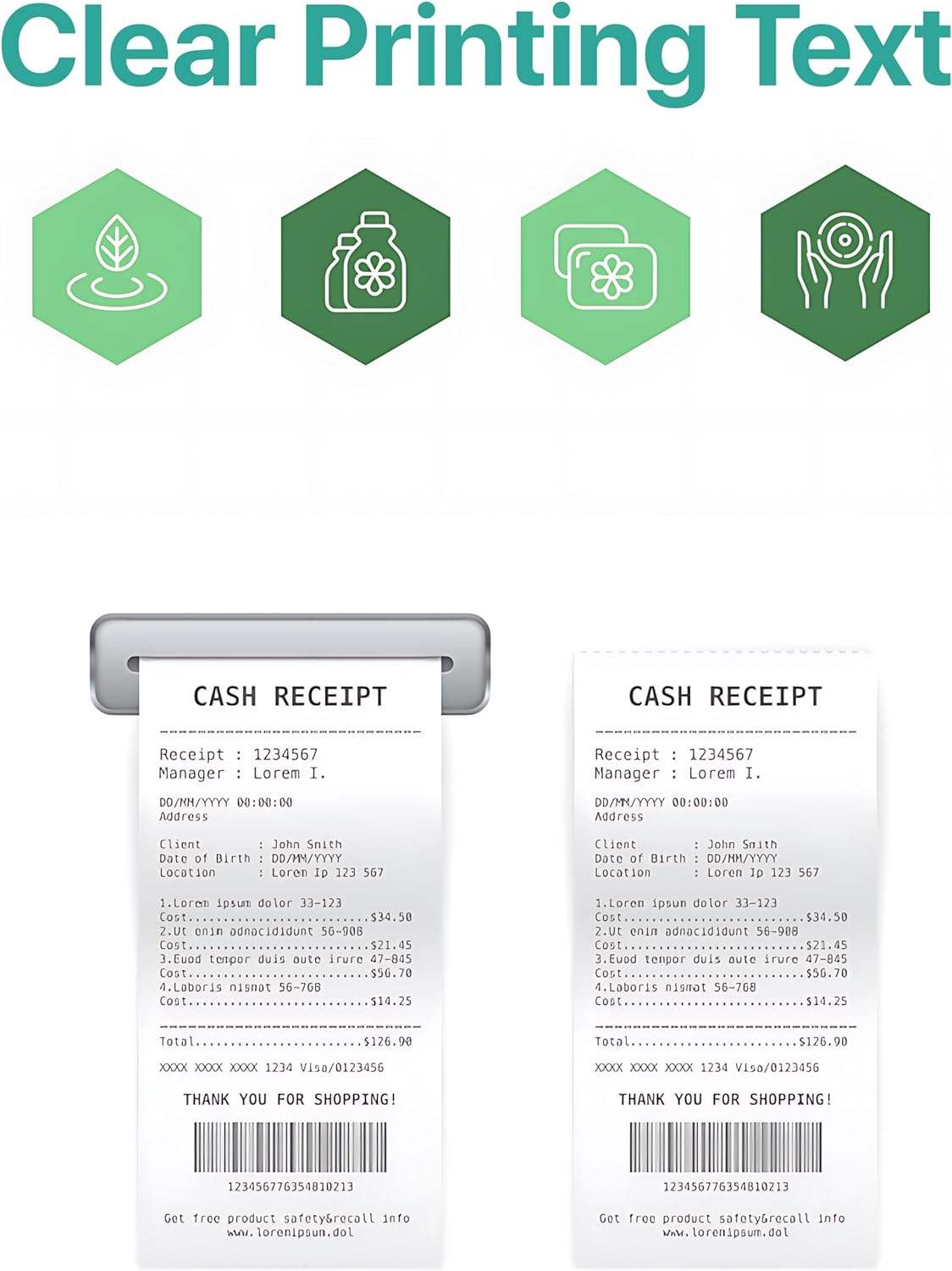 Could you provide details on thermal paper roll sizes and compatible machines? Thanks!