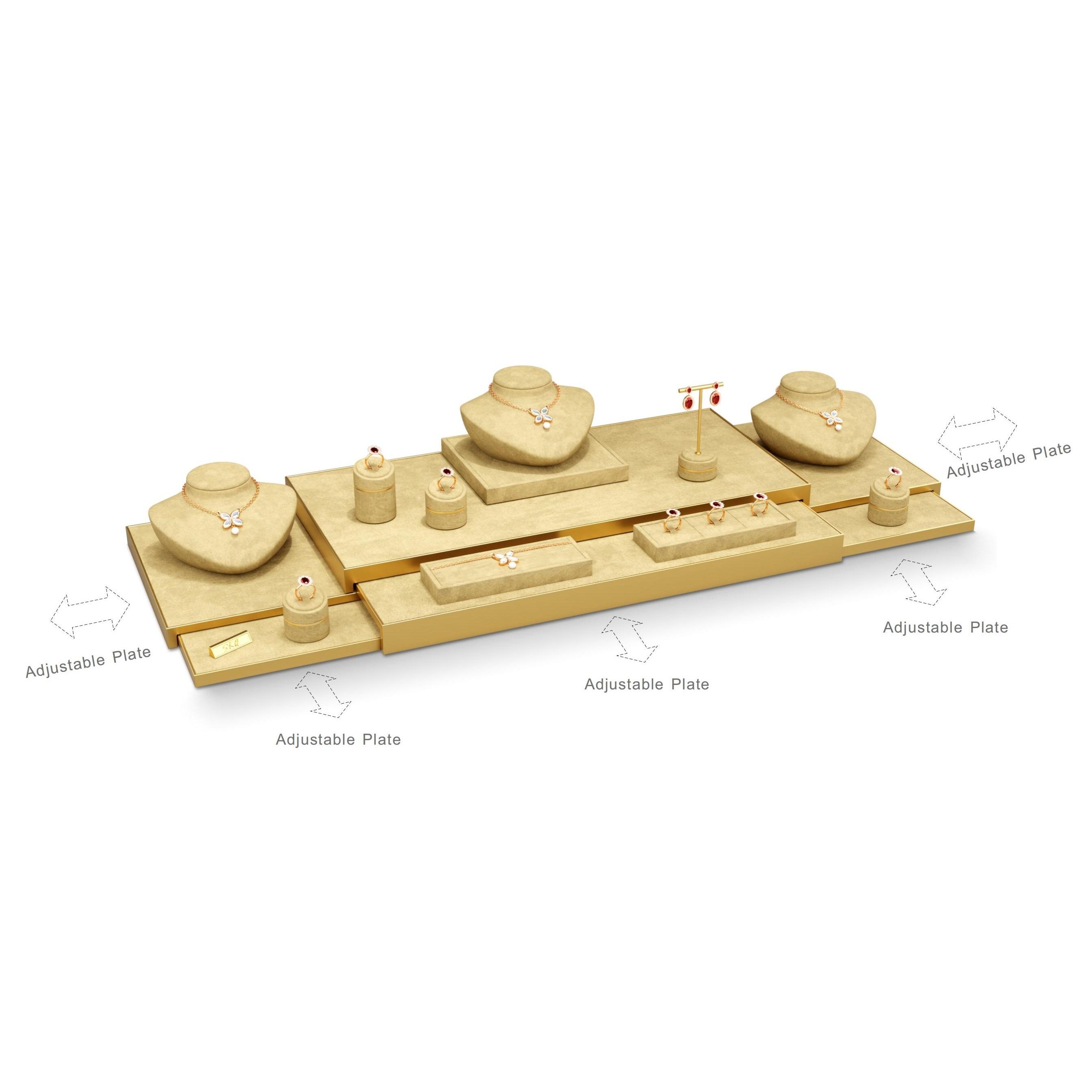 你能告诉我两套光滑香槟色和白色PU皮革手工珠宝展示架的价格吗?谢谢!