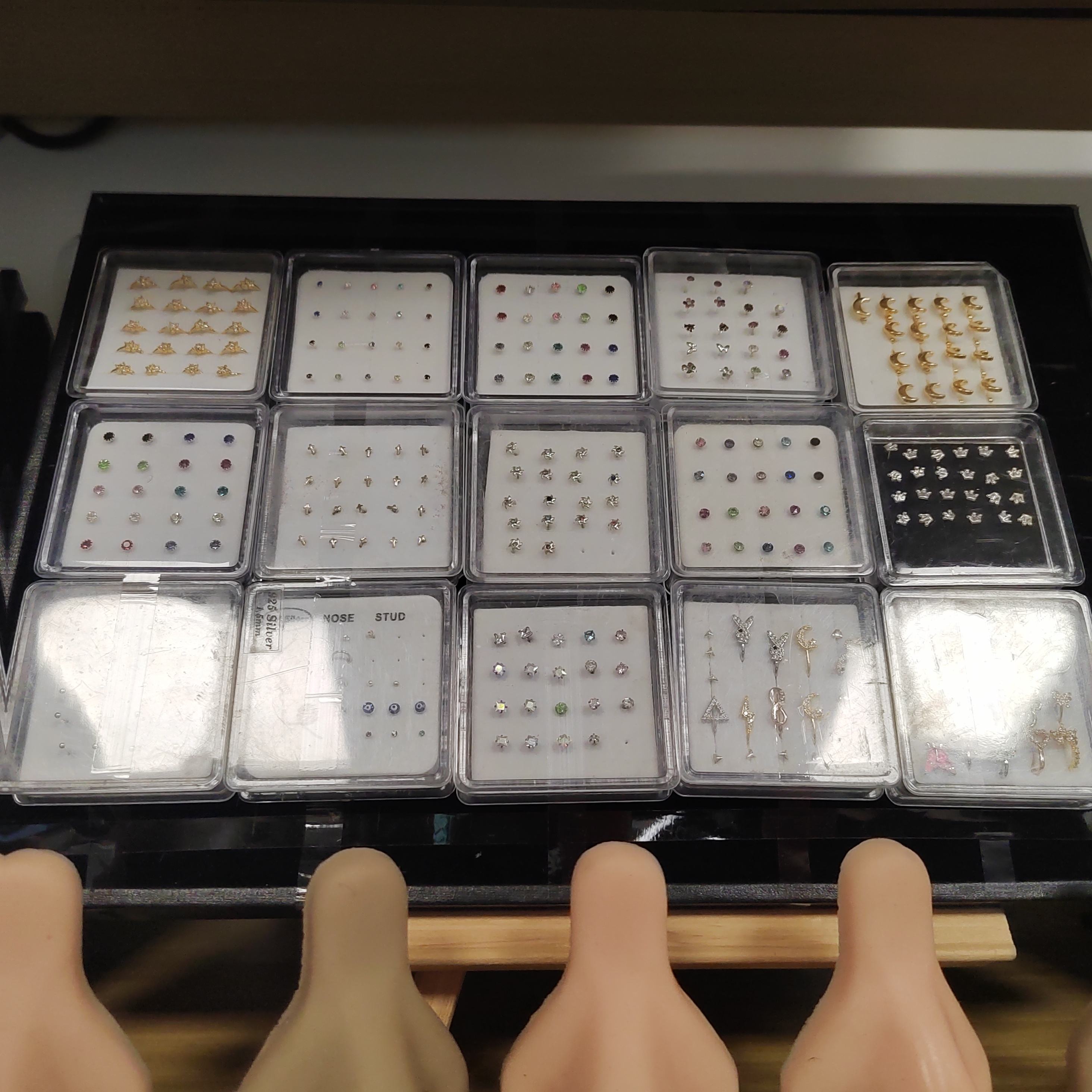 寻找一套钻石展示套装,内含锆石,镶嵌于亚克力棒上,形状各异(圆形、椭圆形、长方形等),尺寸各异(0.1至2.0)。需印上品牌标识,并以精美的文件夹形式展示。