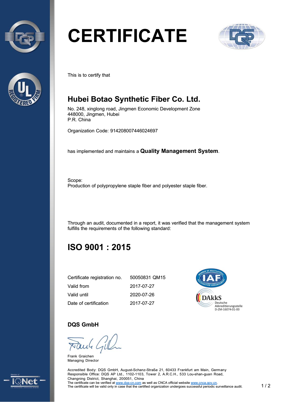 我们正在寻找新的供应商来满足我们持续的需求。目前,我们每月需要约350吨原生涤纶短纤用于纺纱,虽然我们仍在使用OB,但我们也愿意考虑其他替代方案。此外,我们每月消耗约30吨再生涤纶和25吨黑色再生涤纶。