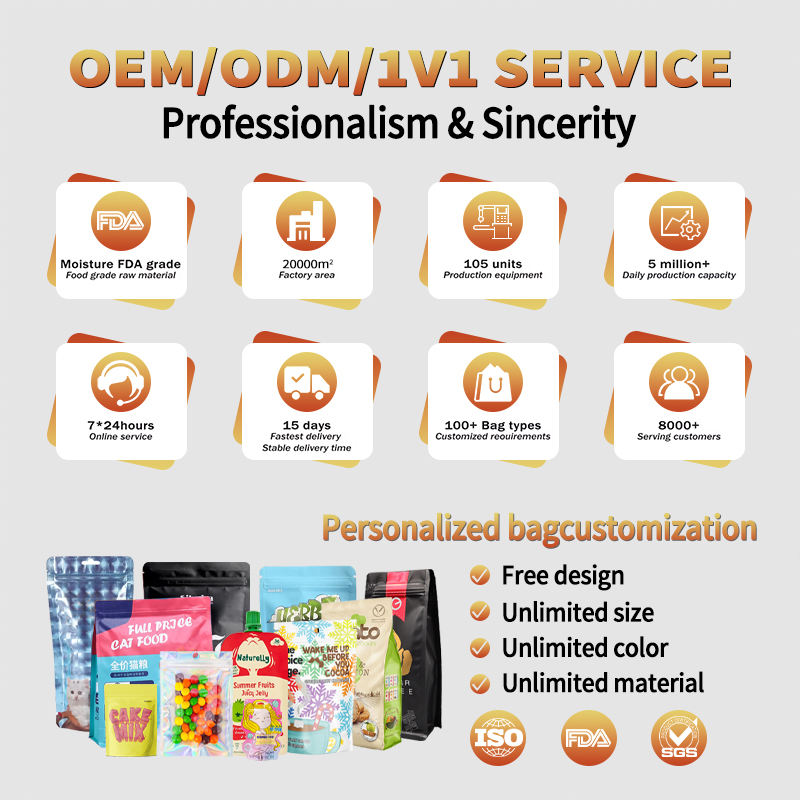 请问能否提供一些关于可用材料、定制选项(例如印刷和表面处理)、最小起订量、交货时间和预估价格的信息?另外,你们是否提供灌装服务,还是只生产包装?谢谢!