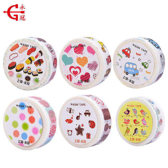 Need 15mm washi tape, 10m, blank core, 8 colors, each with a unique phrase, 50-100 pcs each. Thanks!