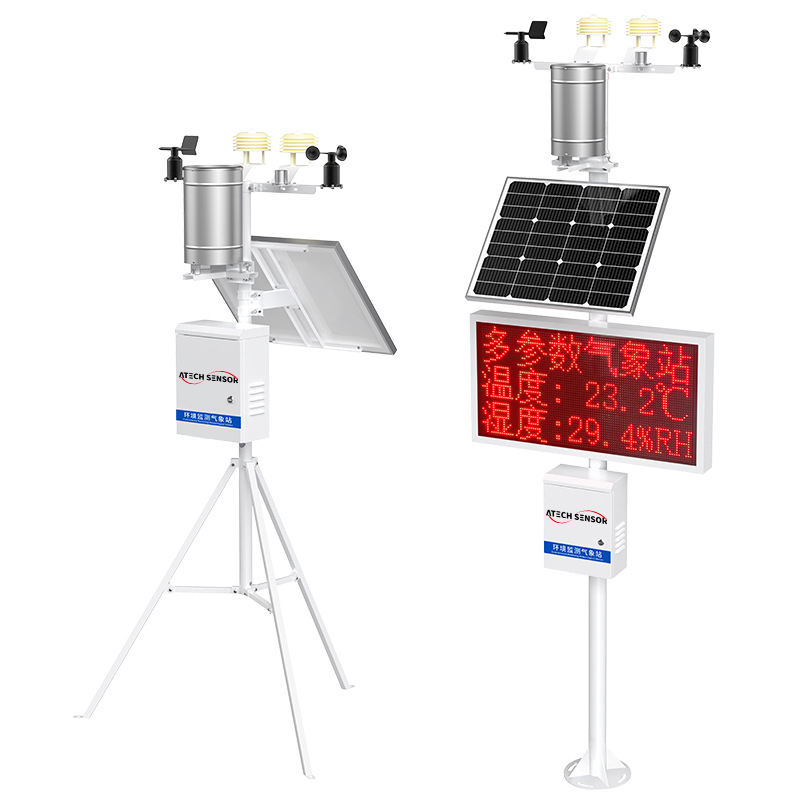 我正在寻找一款配备温度/湿度、风速、雨量、太阳辐射和气压传感器的自动气象站。它需要支持4G GSM数据传输,由太阳能电池板和蓄电池供电,可安装在三脚架/桅杆上,并包含数据记录器和云平台。