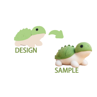询盘原文:Looking for a small dinosaur design, palm-sized. It should have a forest green body with deep red spikes on the back and tail, and blue eyes. Please include the text "NickyWrex" on the foot or any backside.美国 | 2024-06-17